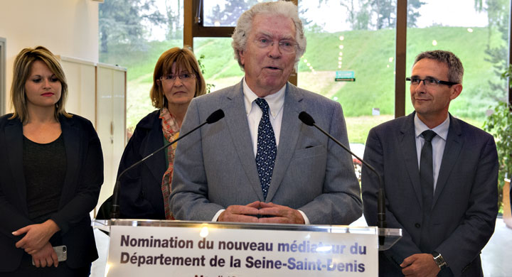Je veux d’abord remercier ceux qui ont dessiné les premiers contours de la médiature départementale mise en place en 2009 par Claude Bartolone. Pierre Berton comme médiateur et Gérard Cosimi comme médiateur délégué ont permis d’installer la médiature comme un outil de dialogue et d’écoute entre le service public départemental et les citoyens. Je souhaite en votre nom à tous les remercier chaleureusement. Et dire les encouragements de Pierre Berton que j’avais hier encore au téléphone qui m’a dit lui aussi l’honneur et la fierté qu’il éprouvait de voir Pierre Joxe lui succéder.